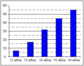 Podemos representar las frecuencias acumuladas de esta serie de datos mediante un diagrama de barras:
