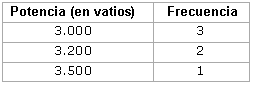 Supongamos que has ido anotando la potencia (en vatios) de seis lavavajillas diferentes que están expuestos en una tienda, y que has registrado estos resultados en una tabla: