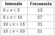 Después de los exámenes, los resultados obtenidos por los estudiantes de un colegio han sido agrupados en intervalos de 5 puntos. Y hemos obtenido la siguiente tabla: