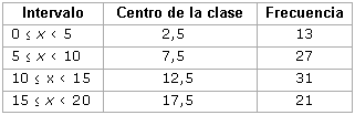 Podemos dibujar una nueva tabla que nos muestre el valor central de cada intervalo: