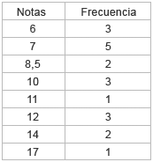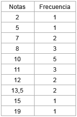Ejemplo: la siguiente tabla nos muestra la distribución de las notas (sobre 20) obtenidas en un examen por una clase de 24 alumnos: