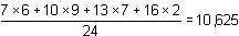 Su media ponderada es igual a la suma de los productos de cada nota por su ponderación, dividida entre la suma de todas las ponderaciones, lo cual nos da:![]()