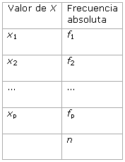 Comenzamos con una serie de datos, cuyos valores y frecuencias absolutas, fi, aparecen recogidos en una tabla similar a la siguiente: