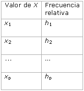 Construimos una tabla con los valores de la serie de datos y sus frecuencias relativas, similar a la siguiente: