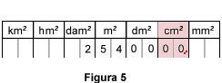 Si llevamos la coma a la columna de los decámetros cuadrados, leemos la cantidad transformada: 2,54 dam².